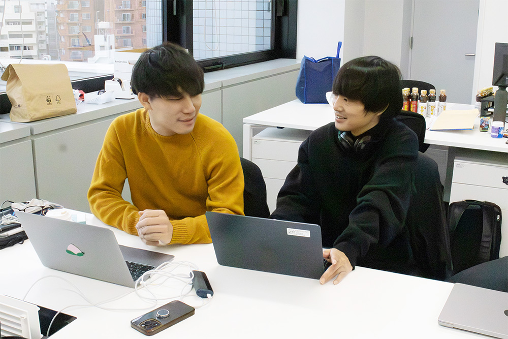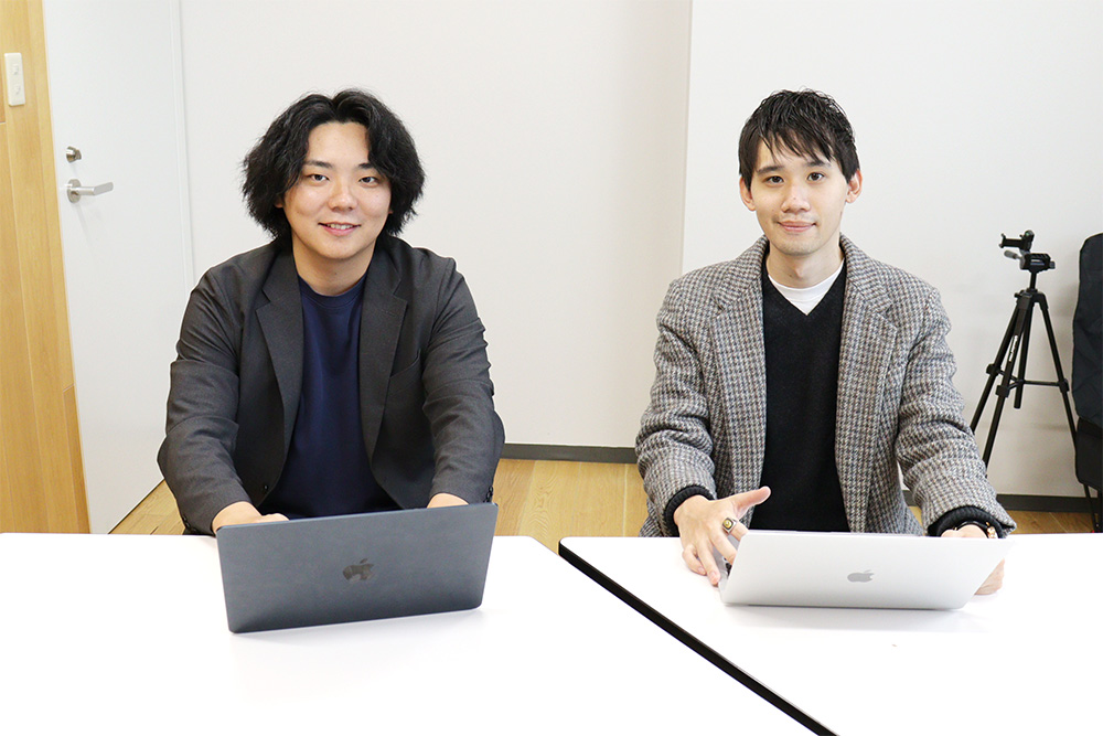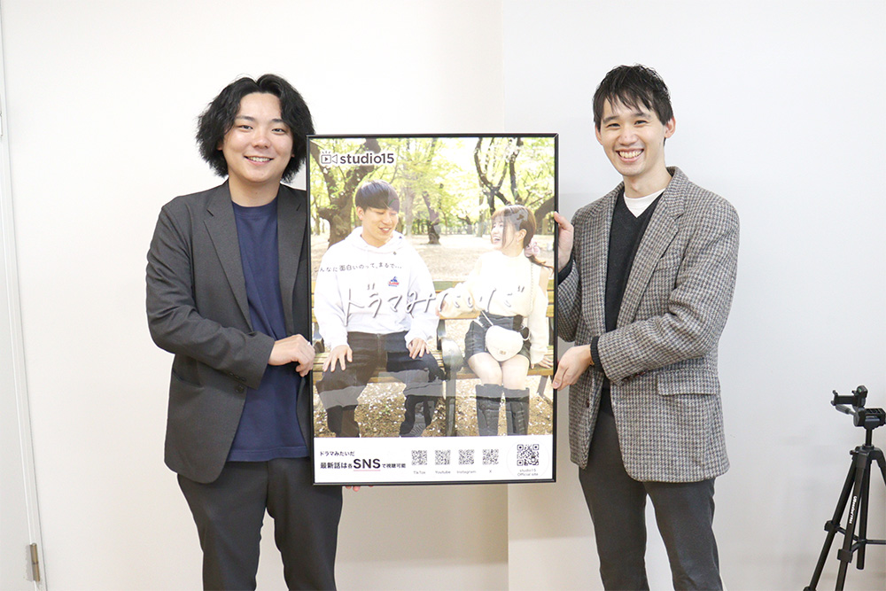 オフィスを訪問すると、クリエイターのマネジメントと自社メディアの運用を担当するプロダクション事業部のマネージャー/ショートドラマプロデューサー・高橋奨真さんと、企業/採用広報からマーケティングまで一手に担う社長室 広報/マーケティング担当・吉田拓哉さんが迎えてくださいました。
