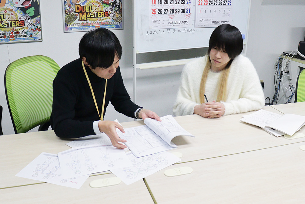 茂木さん「動画が完成したら終わりではなく、その後も撮影、編集、アフレコなどさまざまな工程が残っています。全体のスケジュール管理をするのが制作進行なので、進行の連絡で現場が明日何をすべきか決まる。とても責任ある仕事です。