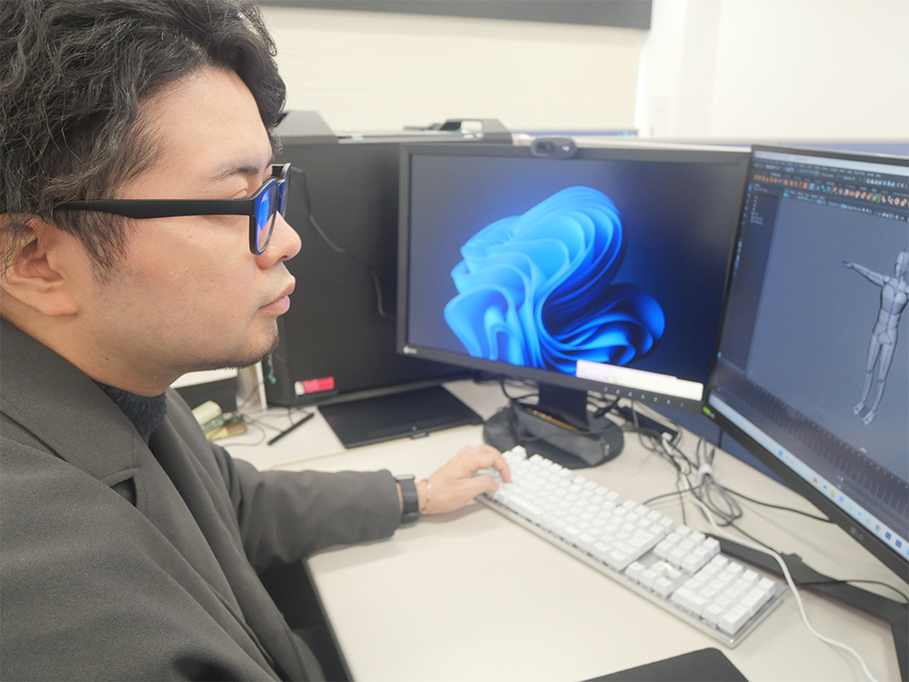 岩切さん「実際、今いるスタッフもさまざまなバックグラウンドを持っていて、個人でBlenderで作品作りをしていた方もいるし、これまでゲーム・遊技機業界でスキルを磨いてきた方もいます。経験者はもちろん新卒の方でも応募OKですし、日本語でコミュニケーションが取れれば国籍も問いません」
