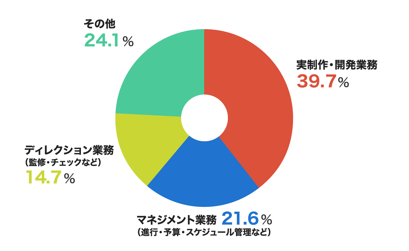 「実制作・開発業務」「監修・チェックなどのディレクション業務」「進行管理・予算/スケジュール管理などのマネジメント業務」「その他」