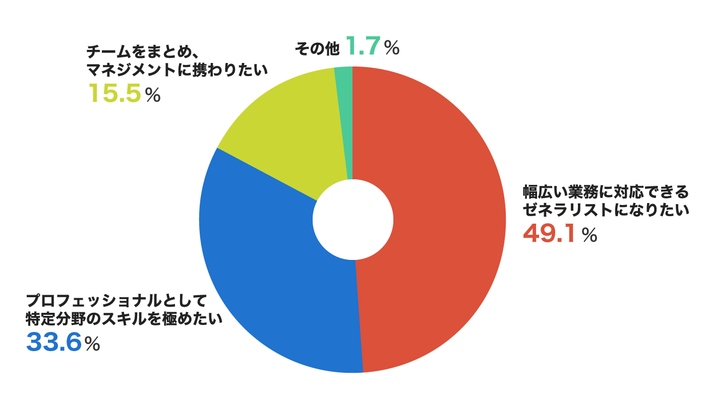 「プロフェッショナルとして特定分野のスキルを極めたい」「幅広い業務に対応できるゼネラリストになりたい」「チームをまとめ、マネジメントに携わりたい」「その他」