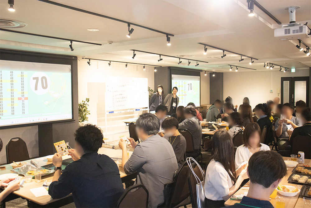 交流会の後には、会場の皆さんに楽しんでいただくコンテンツとしてビンゴゲームを開催いたしました。リモートワークや職場で使える日用品から豪華景品まで様々な景品を目指して、番号が出るたびに会場全体で大盛り上がりでした!
